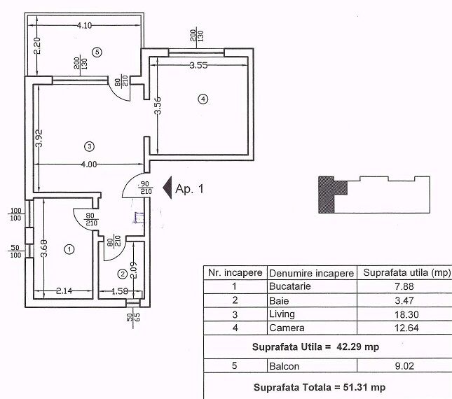 Apartament bine compartimentat, bloc solid P+2E+M din 2008.
