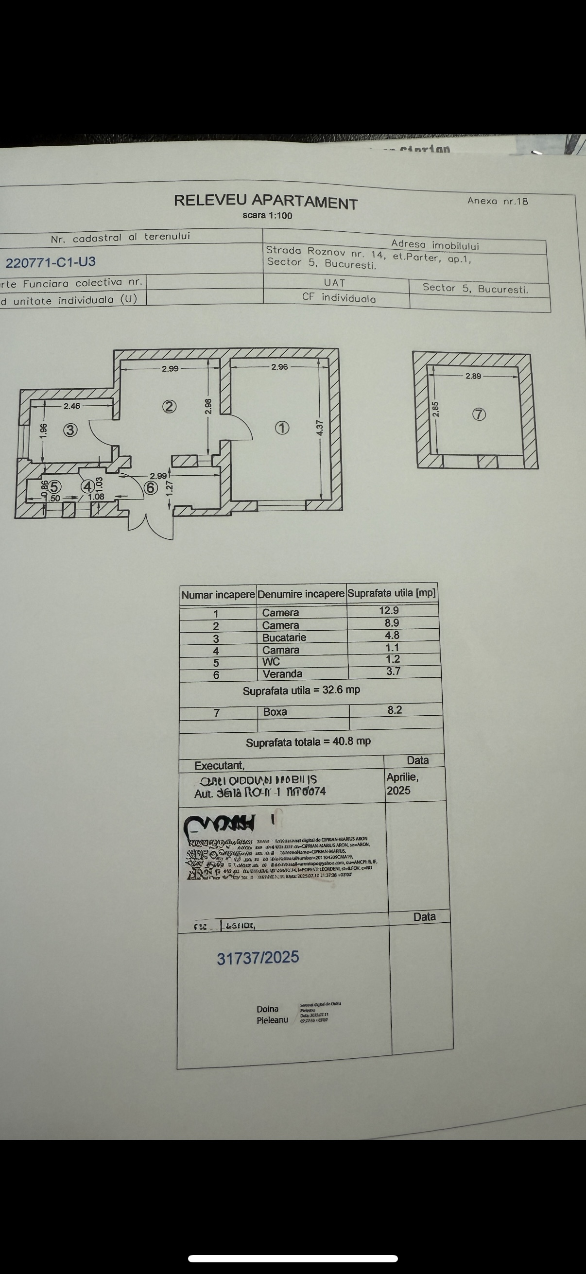 Langa Monetaria Statului. apartament cu 2 camere in vila cu un etaj, an 1930, structura caramida, centrala proprie, 40,8 m total, 32,6 util, garaj, curte, intrare separata, pivnita, Roznov 14.