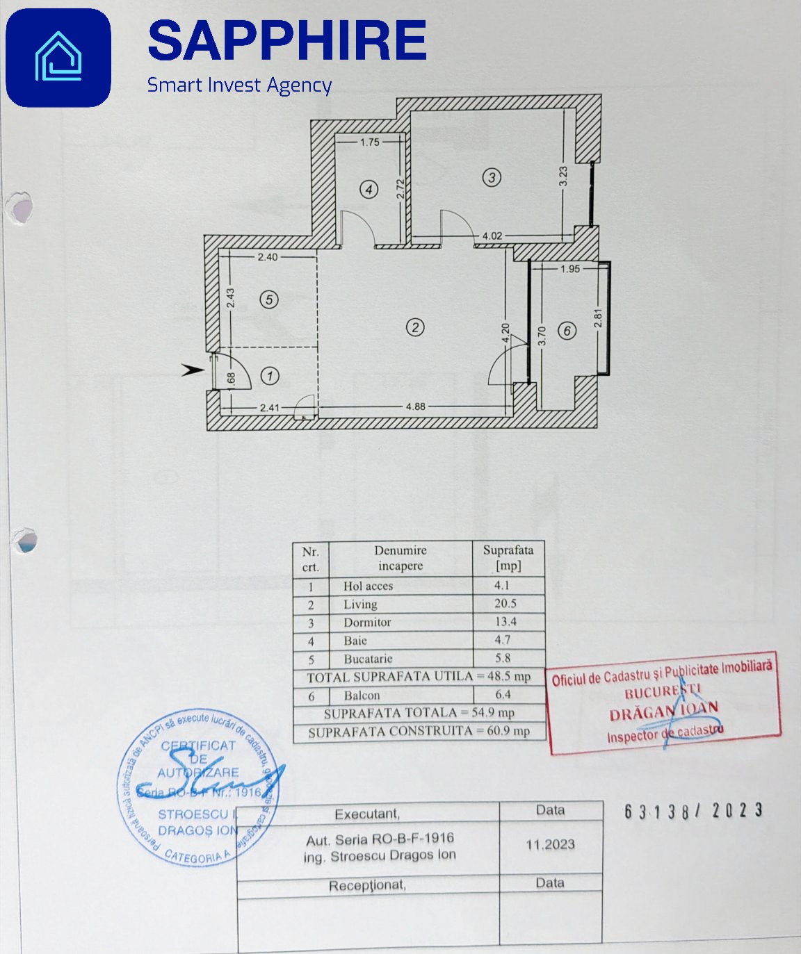 Compartimentare: hol de acces, living open space cu bucatarie, dormitor separat, baie, balcon