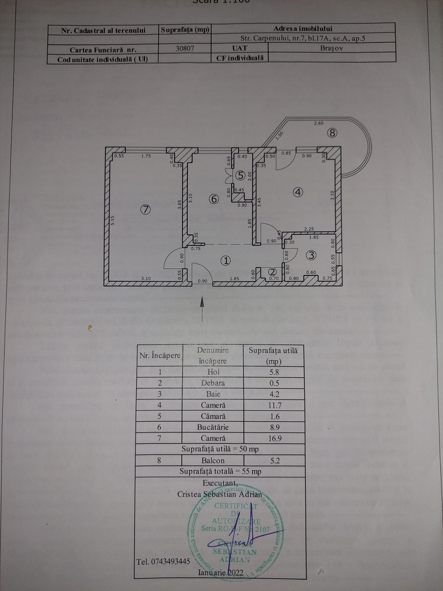 calculeaza distantaRacadau, Brasov Vand apartament 2 camere situat pe strada Carpenului in cartierul Racadau Brasov. Apartamentul este decomandat si se afla la etajul 1/6. Imobilul este reabilitat termic, iar apartamentul beneficiaza de centrala termica proprie. Zona este linistita, cu multe spatii verzi, parcuri, acces rapid la mijloace de transport si centre comerciale.