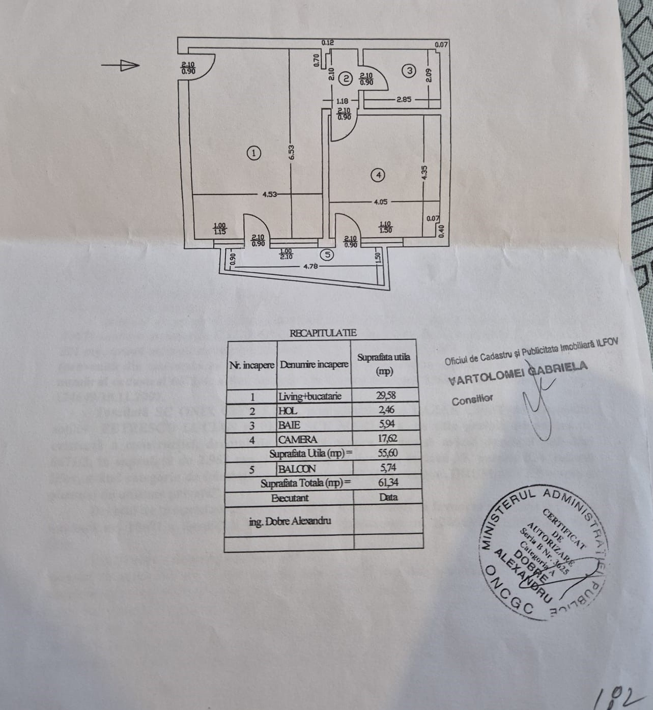 Apartamentul este situat la etajul 2/P+5+M si are o suprafata utila totala de 61,34 (utila 55,60 + balcon 5,74), constructie 2009, complet mobilat si utilat.