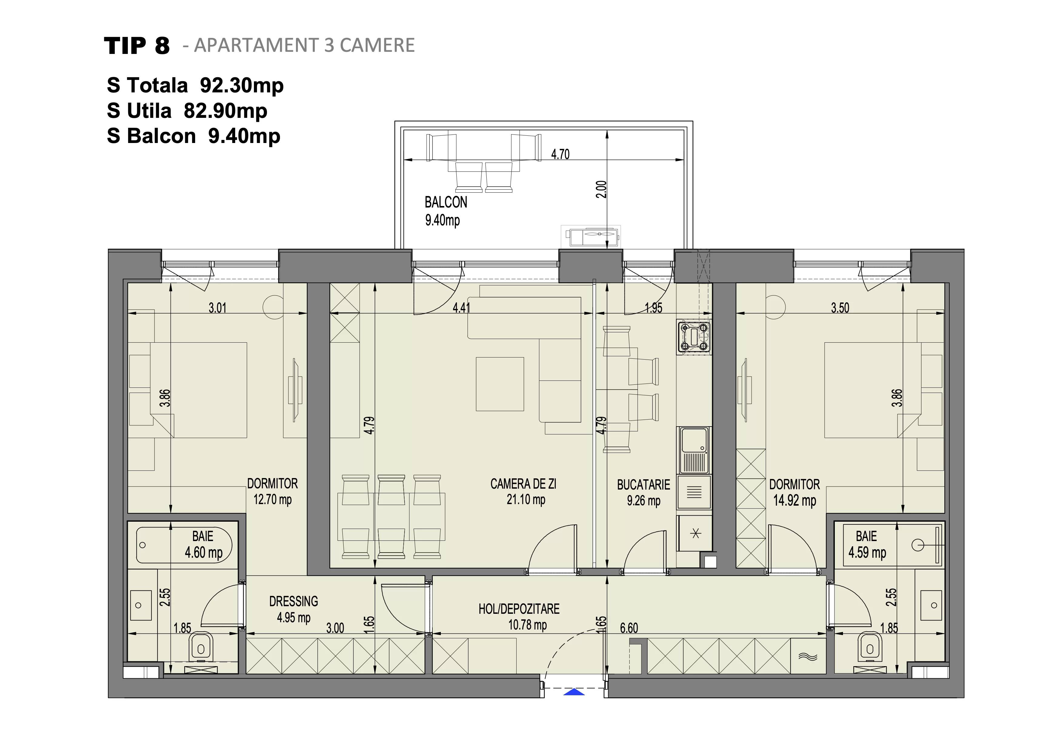 Suprafata utila: 82.90 mp;