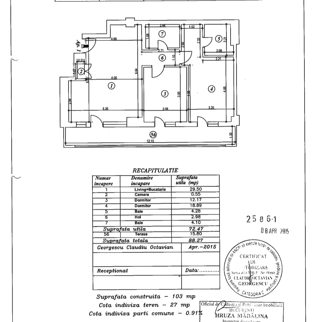 calculeaza distantaBaneasa, Petrom Straulesti Apartament 3 camere, 2 bai, zona Baneasa-Straulesti str Nuferilor, 90mp utili, 103 mp construiti, etaj 1/4, bloc monolit(structura de cadre), complex rezidential 2015.