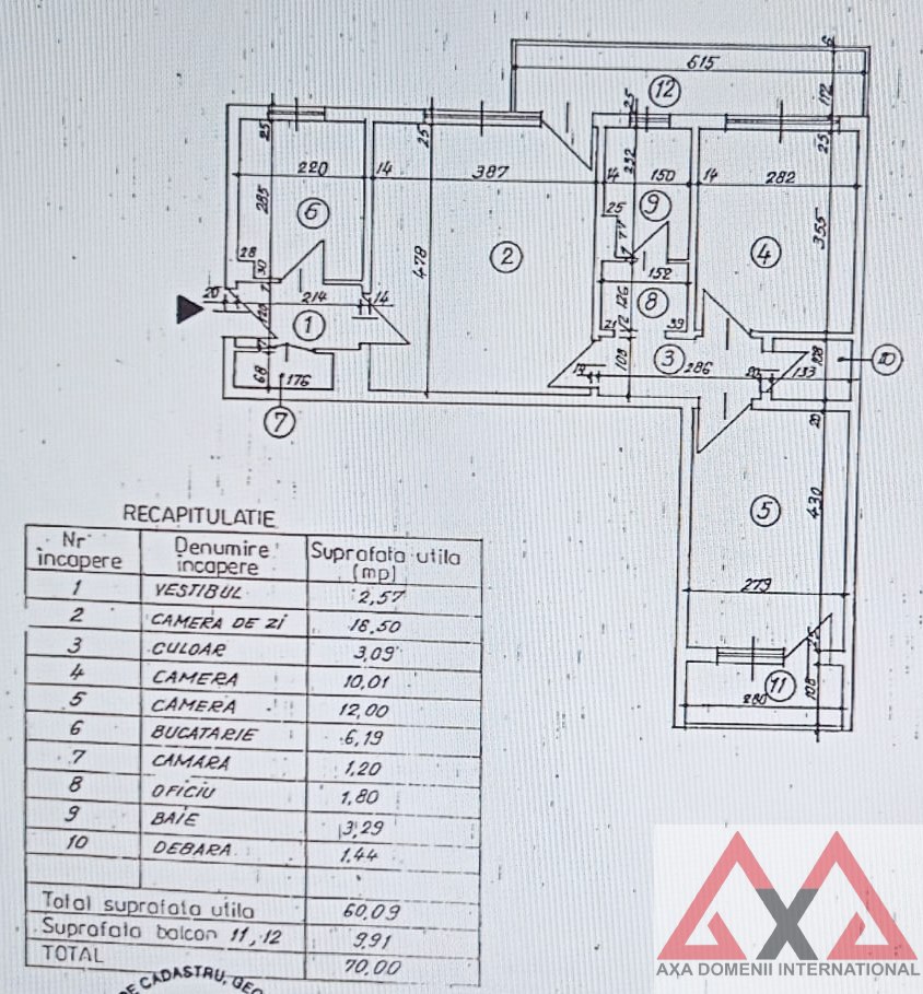 Apartamentul este situat la etajul 3/8, intr-un imobil din 1965 (constructie caramida si grinzi beton), reabilitat termic, cu structura semidecomandata, avand o suprafata utila de 60,09mp si o suprafata totala de 70mp, 2 balcoane, spatii de depozitare, geam la baie si vedere mixta.