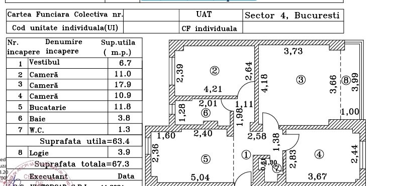 Finisaje:gresie, faianta, parchet, tamplarie PVC cu geam termopan.