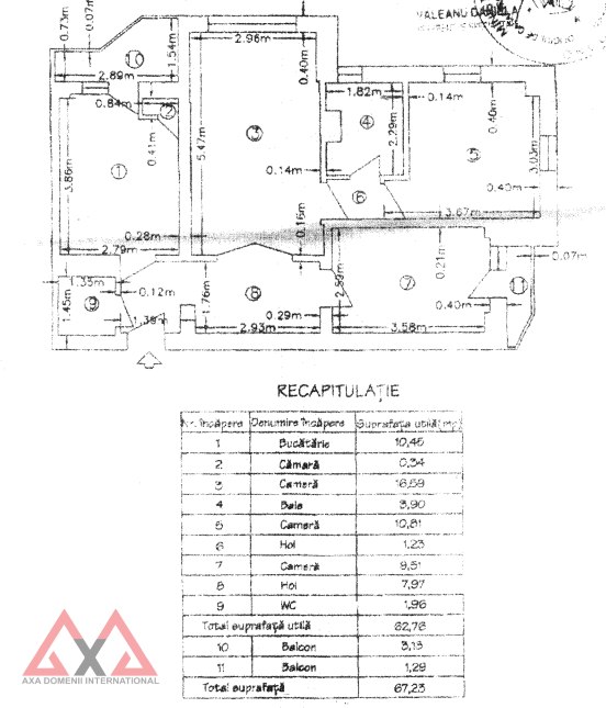 Compartimentarea este semidecomandata, avand o suprafata totala de 67,23 mp, doua grupuri sanitare (un grup sanitar cu geam), 2 balcoane si vedere mixta.