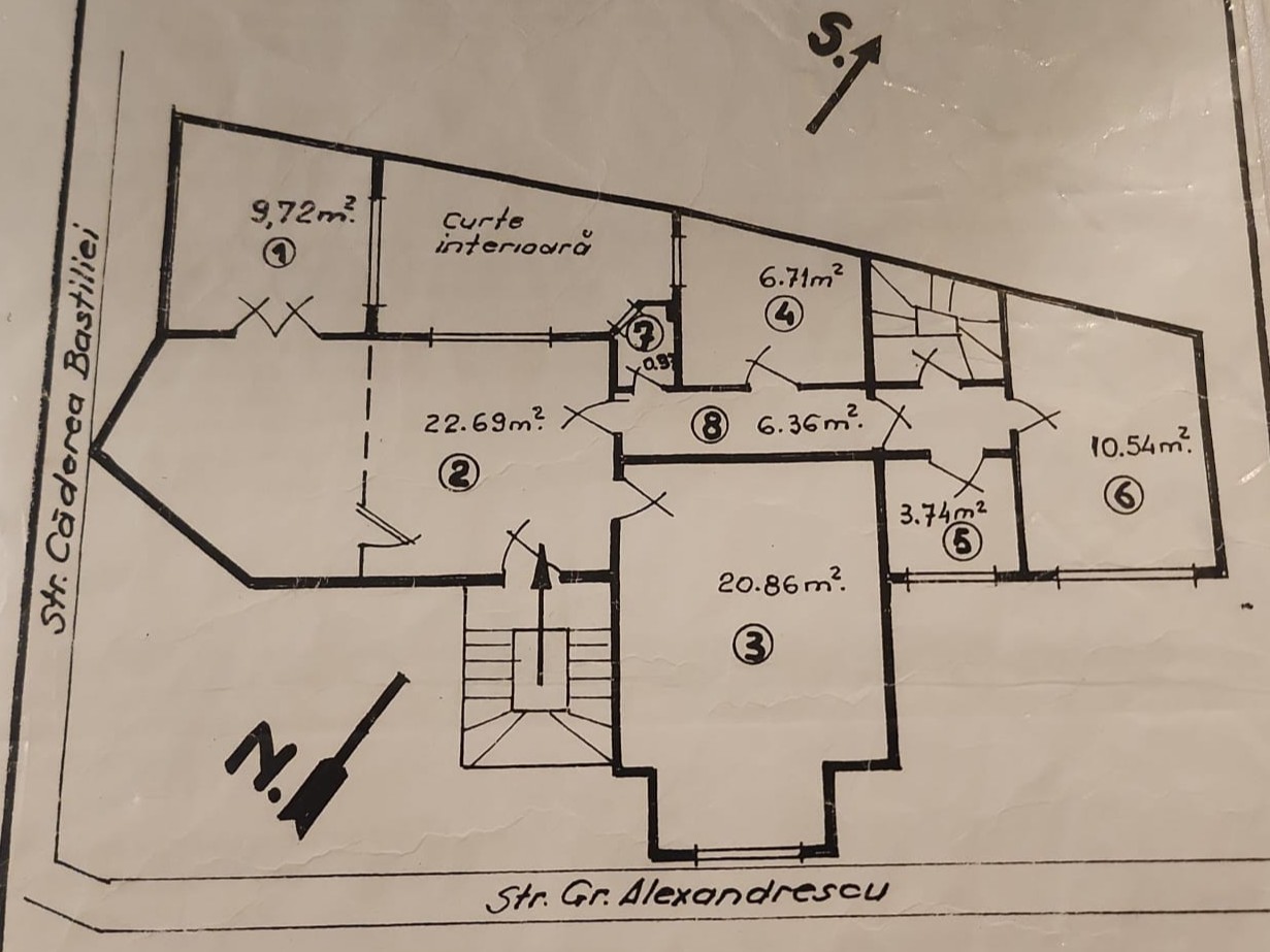 De vanzare un apartament de 80 mp utili, aflat la etajul 1 al unei vile interbelice solide (1930), pe Strada Grigore Alexandrescu, foarte aproape de Calea Dorobanti.