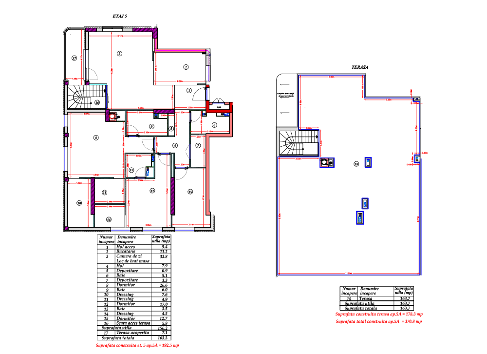 12,8 m2 suprafata balcon, 164,2 m2 suprafata terasa. Pret la cerere,