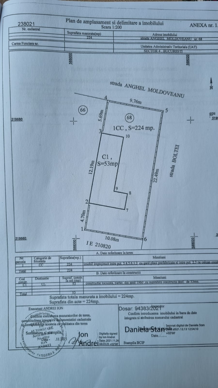 calculeaza distantaAnghel Moldoveanu nr. 68, Suprafata utila 53 mp, teren 224 mp,4 camere, constructie 1980, strazi asfaltate, iluminat stradal, mij de transport in comun, utilitati: apa, canalizare, CATV, curent,acces internet,cablu, fibra optica, wireless, ferestre cu geam termopan lemn,contorizare apometre,cadastru,intabulare,ANCPI,apa,cal,fantana,hidrofor, curent electric,pivnita,gard prefabricate beton, gazele pe ambele parti ale gardului. Imobilul este situat pe colt,porti metalice,se poate construi:vila,service auto,etc. Casa demolabila (batraneasca). Actele pregatite de vanzare(proprietar). Dedeman,in capatul strazii,impozit 2025 platit,toate utilitatile platite la zi.Singur in curte(nu alei sau intrari),acces auto 2-3 in curte.