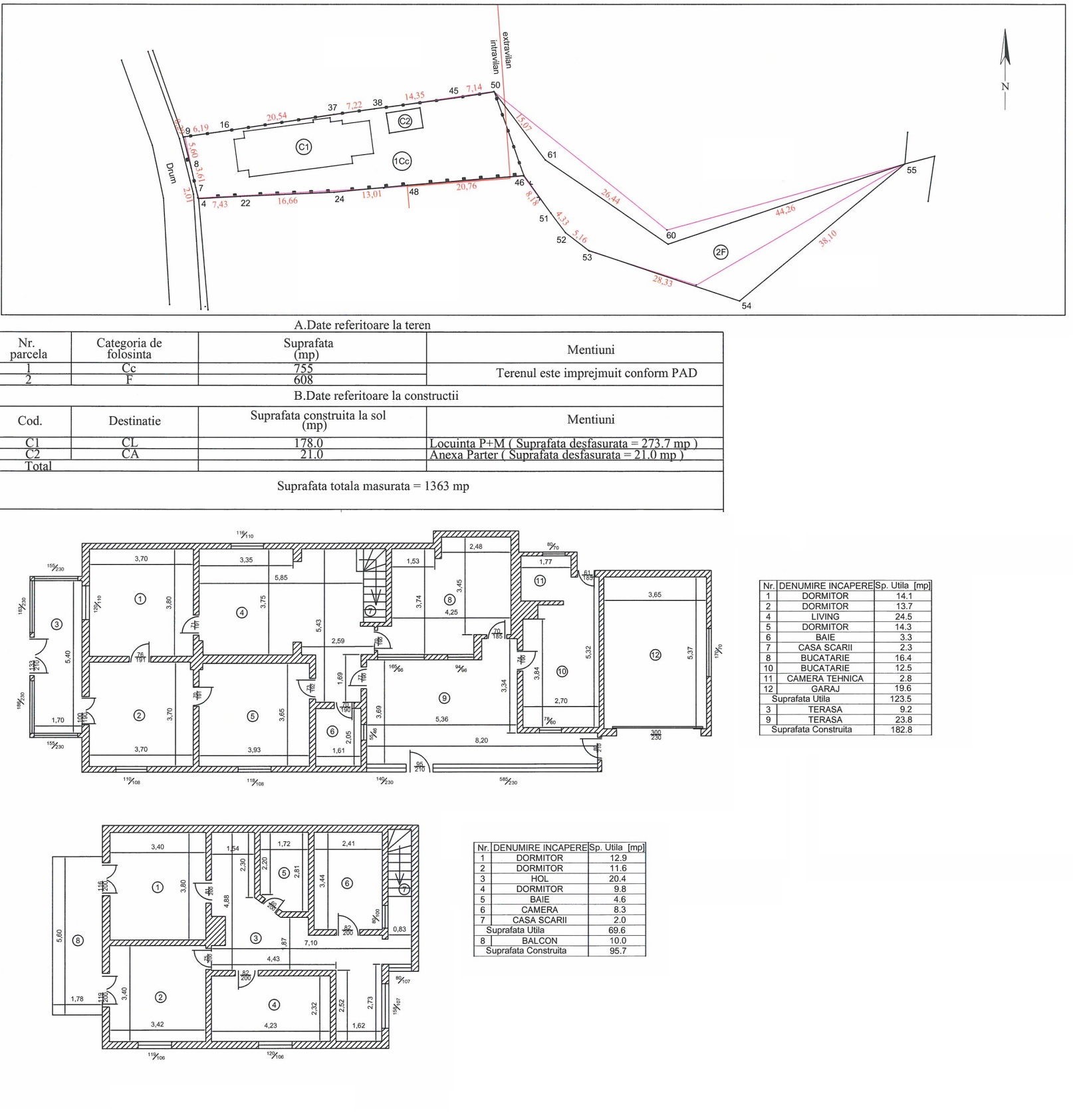 Suprafata totala teren: 1363 mp, cu 755 mp intravilan si 608 mp extravilan.