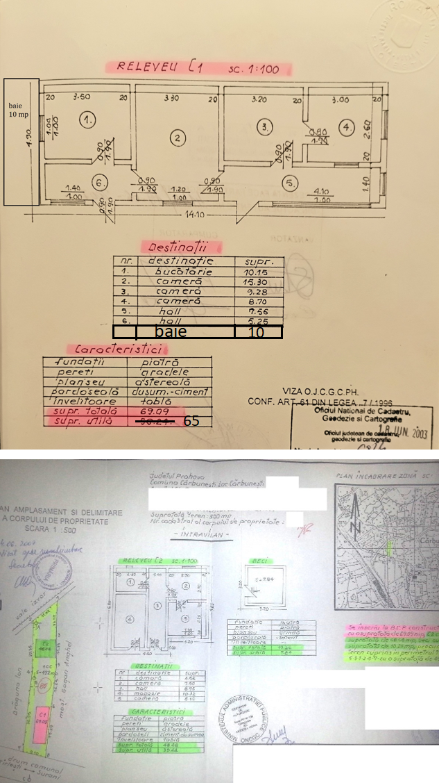 • Teren: 500 mp (lungime dreapta: 61 ml, lungime stanga: 51 ml, front fata - stradal: 9,10 ml cu deschidere la drumul principal (asfaltat), front spate 11,42 ml cu iesire la vale izvor).