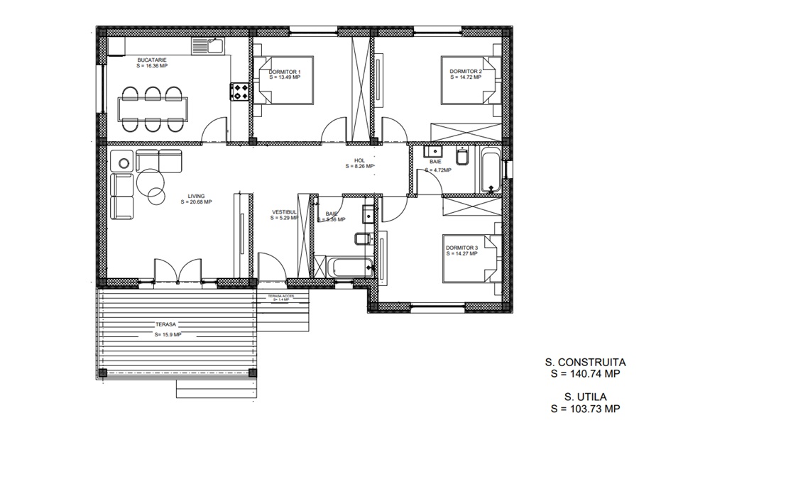 Casa se predau la cheie cu finisajele complete (gresie, parchet, sanitare, usi, incalzire prin calorifere, centrala) cu utilitati: apa, canal, gaze, curent. Geamuri tripan, placa peste etaj, alei betonate, terasa acoperita, incalzire in pardoseala. Casele sunt construite din caramida de 30 cm cu izolatie conform normativelor pentru clasa energetica A. 140 m construiti / 120 m utili / 428 m teren / strada de 11 m latime. 3 dormitoare / 2 bai / bucatarie inchisa sau deschisa.