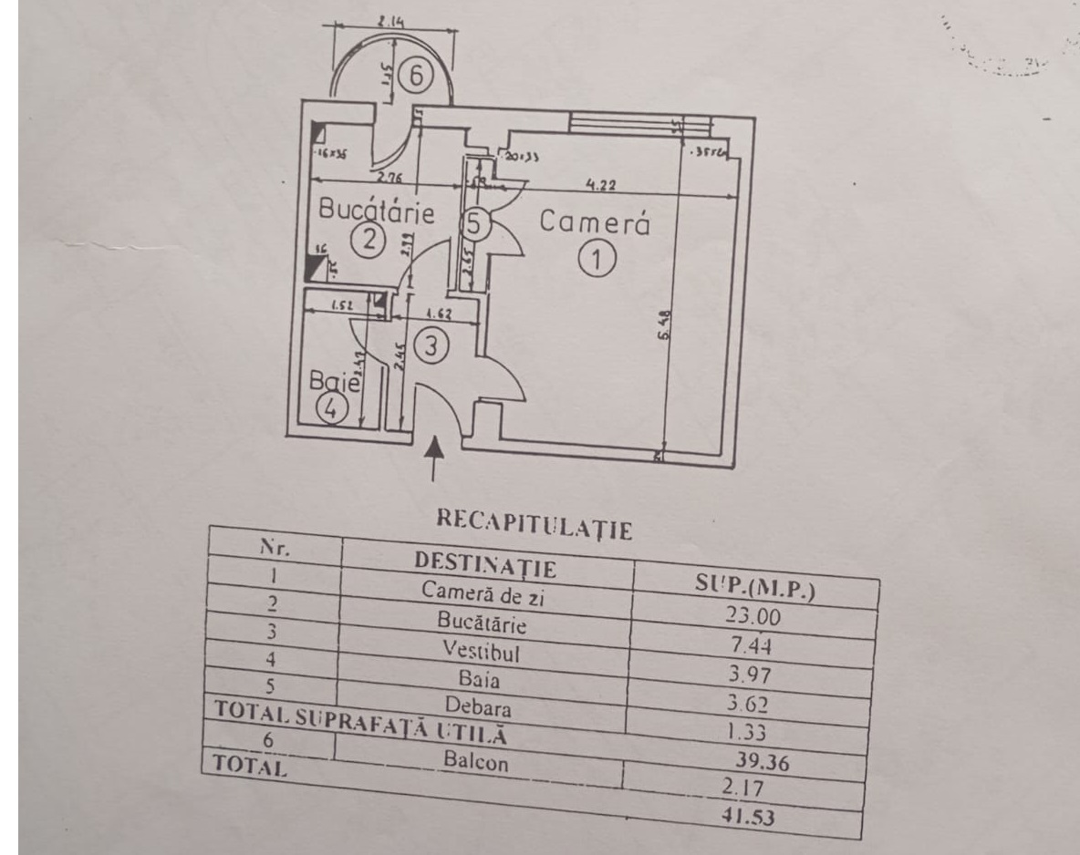 Garsoniera se afla intr-un bloc mixt la etajul 5/10 si are o suprafta totala de 41.53mp.
