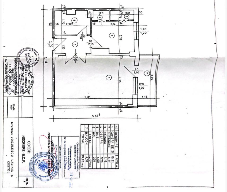 Suprafata utila: 34,97 m² + balcon inchis termopan de 4,31 m² → total 39,28 m²