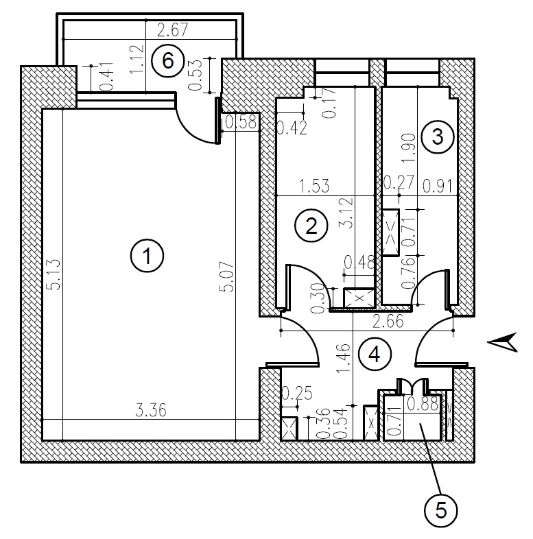 Garsoniera este situata la etajul 7, are o suprafata totala de 34 mp si este eficient compartimentata.