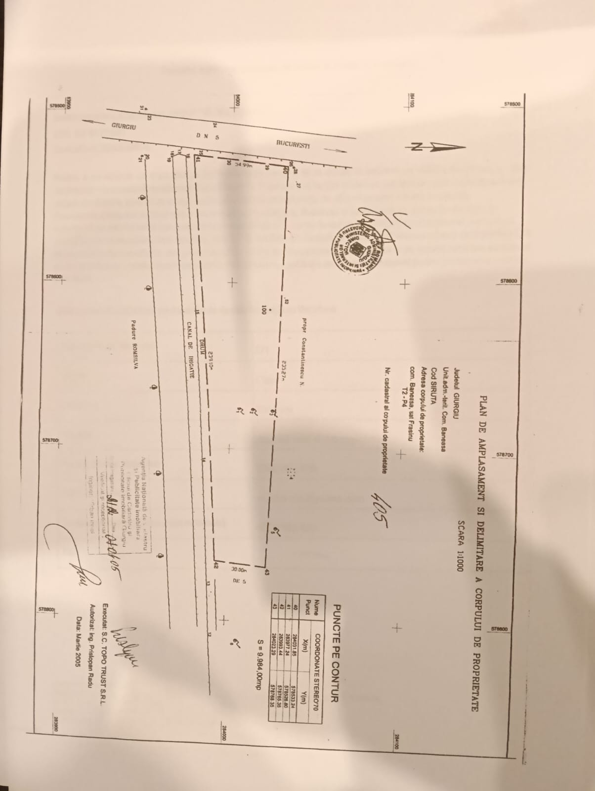 calculeaza distantaBucuresti-Giurgiu. DN5 stradal, DN5, , km 45, stradal, 10000 mp suprafata totala, 54 ml deschidere la dn 5, categorie folosinta curti - constructii, cadastru, intabulare