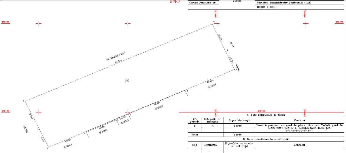 calculeaza distantaMoara Vlasiei teren 13000 mp, nod A3, proprietar, utilitati, PUZ Moara Vlasiei teren 13000 mp, deschidere 57 m la strada Vlasiei, lungime 228 m.