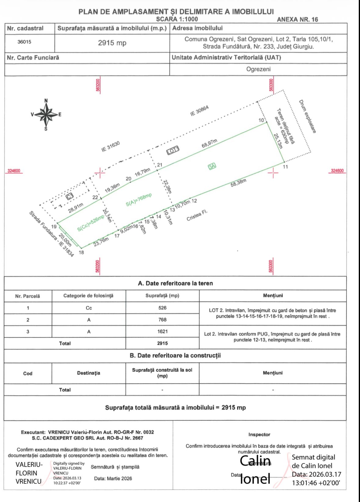 Ogrezeni, Giurgiu Particular vand teren intravilan in comuna Ogrezeni Giurgiu cu o suprafata de 2900 mp! Terenul dispune de o pozitie excelenta intre case, o zona extrem de linistita! Gazele sunt deja prezente in comuna urmand sa ajunga si la proprietate, curent si apa la poarta! Exclus agentie, si va rog nu veniti cu oferte aberante! Doritorilor pot trimite locatie pt a va convinge! Va multumesc!