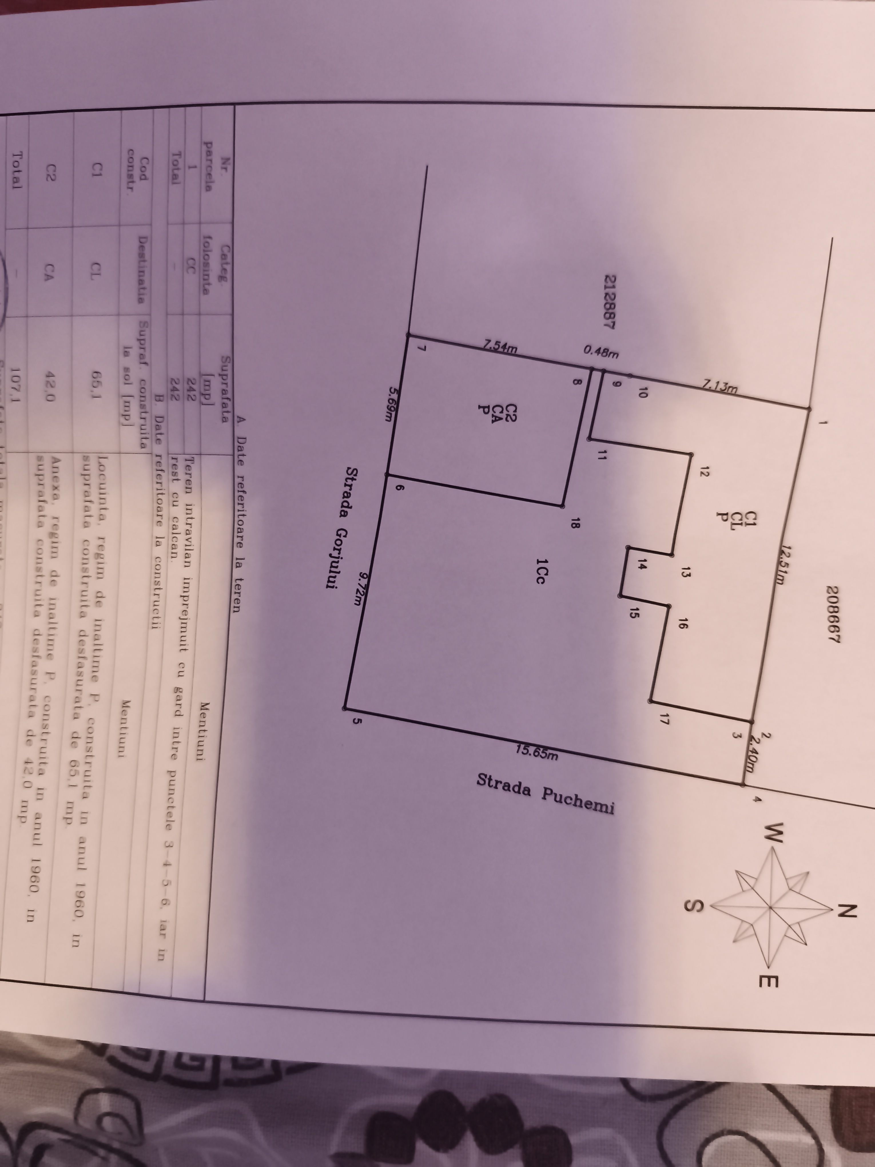 calculeaza distantaRahova strada Pucheni nr72 Bucuresti Vand teren intravilan 242mp si casa formata din 3camere, baie, bucatarie, hol demolabile in suprafata de c1 65.1mp, anexa c2 42mp situat in strada pucheni nr72 sector 5 Bucuresti cartier Rahova. Terenul are 2cai de acces in strada pucheni suprafata de deschidere 15.6 m si strada Gorjului suprafata de 16m . Este racordata la energie electrica, gaze, apa curenta , canal. Suprafata terenului este de 242mp .anul constructiei 1960 .cadastrul facut in 07.2024 .