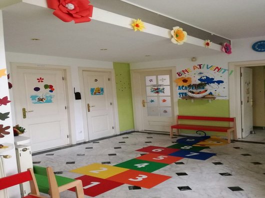 Gradinita "Academia Strumfilor" beneficiaza de un spatiu generos si special amenajat, in care copiii primesc o educatie de calitate conform standardelor din domeniu - programa agreata MEC