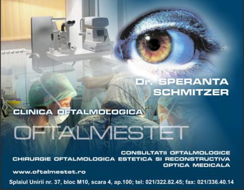 Dr. Speranta SCHMITZER: Medic primar oftalmolog, Sef de lucrari, efectueaza interventii chirurgicale plastice-reconstructive, ale cataractei, glaucomului si strabismului. Chirurgie: Malformatii congenitale ale ochiului, pleoapei si orbitei; ptoze palpebrale congenitale; blefarofimoza; microftalmie;...