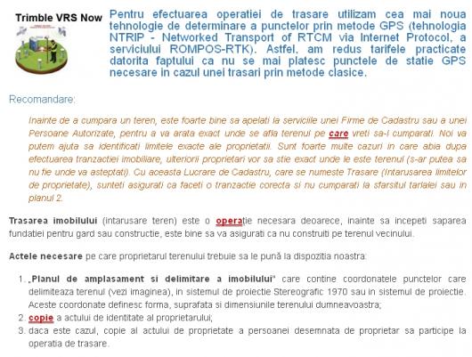 Firma de topografie si cadastru executam lucrari de specialitate la preturi avantajoase: - cadastru si intabulare imobile - actualizari cadastru - apartamentari, alipiri, dezmembrari - consultanta tehnica pentru santiere - relevee de fatada - urmarirea comportarii in timp a constructiilor (studiul tasarilor)...