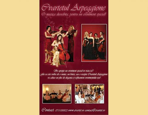 Cvartetul Arpeggione este cel mai renumit cvartet de muzica de divertisment, muzica clasica, muzica de ambianta, muzica nunta si cafe-concert. Cvartetul Arpeggione a sustinut peste 1000 de recitaluri la diferite evenimente mondene: receptii, nunti, cocktailuri, petreceri private, onomastici, dineuri,...