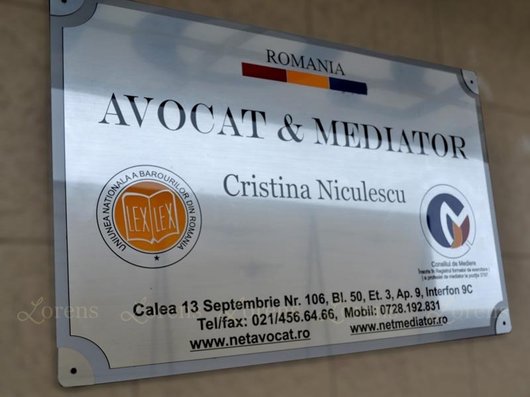 Cabinetul de avocatura Niculescu Cristina raspunde cu promptitudine solicitarilor clientilor, aplicand cele mai bune solutii, si totodata se remarca prin seriozitate, eficienta, si integritate. Scopul nostru este de a fi alaturi de clienti, de a-i informa asupra drepturilor si obligatiilor in...