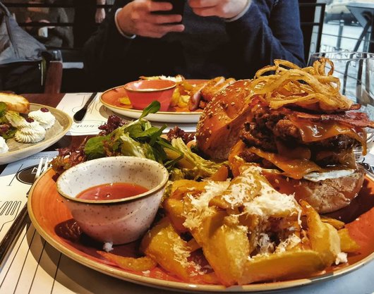 Locatie relaxata pe doua niveluri, cu preparate locale alaturi de friptura, burgeri, bere si cocktailuri.