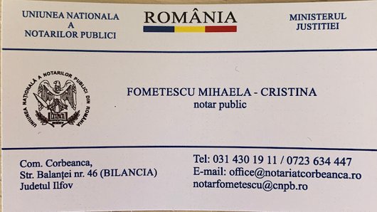 Notar Fometescu Mihaela Cristina Notariat public va ofera servicii complete de notariat in cadrul unui program larg si flexibil, cu promptitudine si profesionalism.