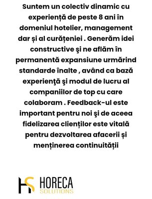 Suntem firma de curatenie HS Solutions, suntem o firma serioasa, flexibila si punem pe prim plan curatenia si multumirea clientului. Avem solutii pentru orice nevoi.